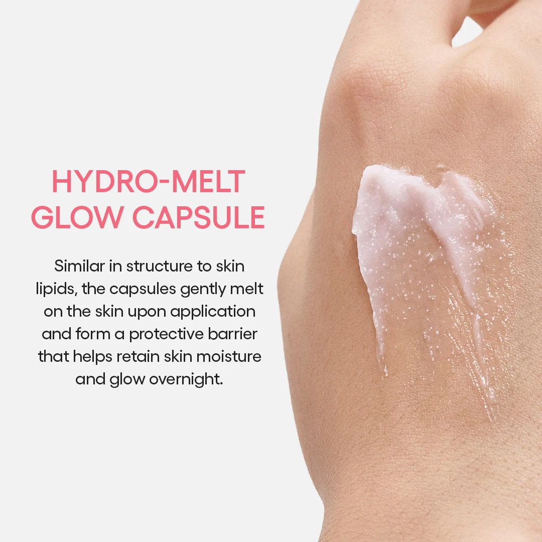 Get glowy, bouncy-looking skin while you sleep! Inspired by the Korean “slow aging” skincare trend, this unique formula features melting glow capsules that mimic skin’s lipids to protect the moisture barrier and nurture overnight, and Peony & Collagen Complex™ and Peptides help boost and preserve collagen, the key to visibly plump, bouncy skin. Over time, it helps visibly reduce fine lines and wrinkles, and improve radiance.